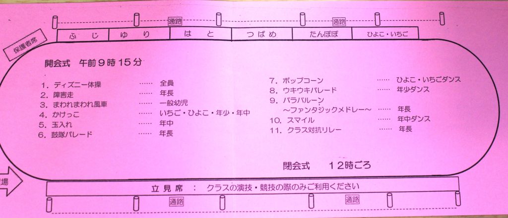 ☆プログラム3番「まわれまわれ風車」は、一般幼児さんの競技になります。