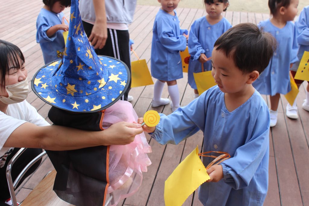 「Trick or treat~!!」と元気いっぱいの声で言うと、かわいいお菓子が出て来て大喜び💕お菓子をもらった後は「ありがとうございます!」としっかりお礼も伝えてくれていましたよ✨たくさんお菓子をもらって「やった~!」とニコニコ笑顔のみんなでした。