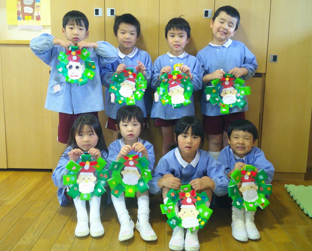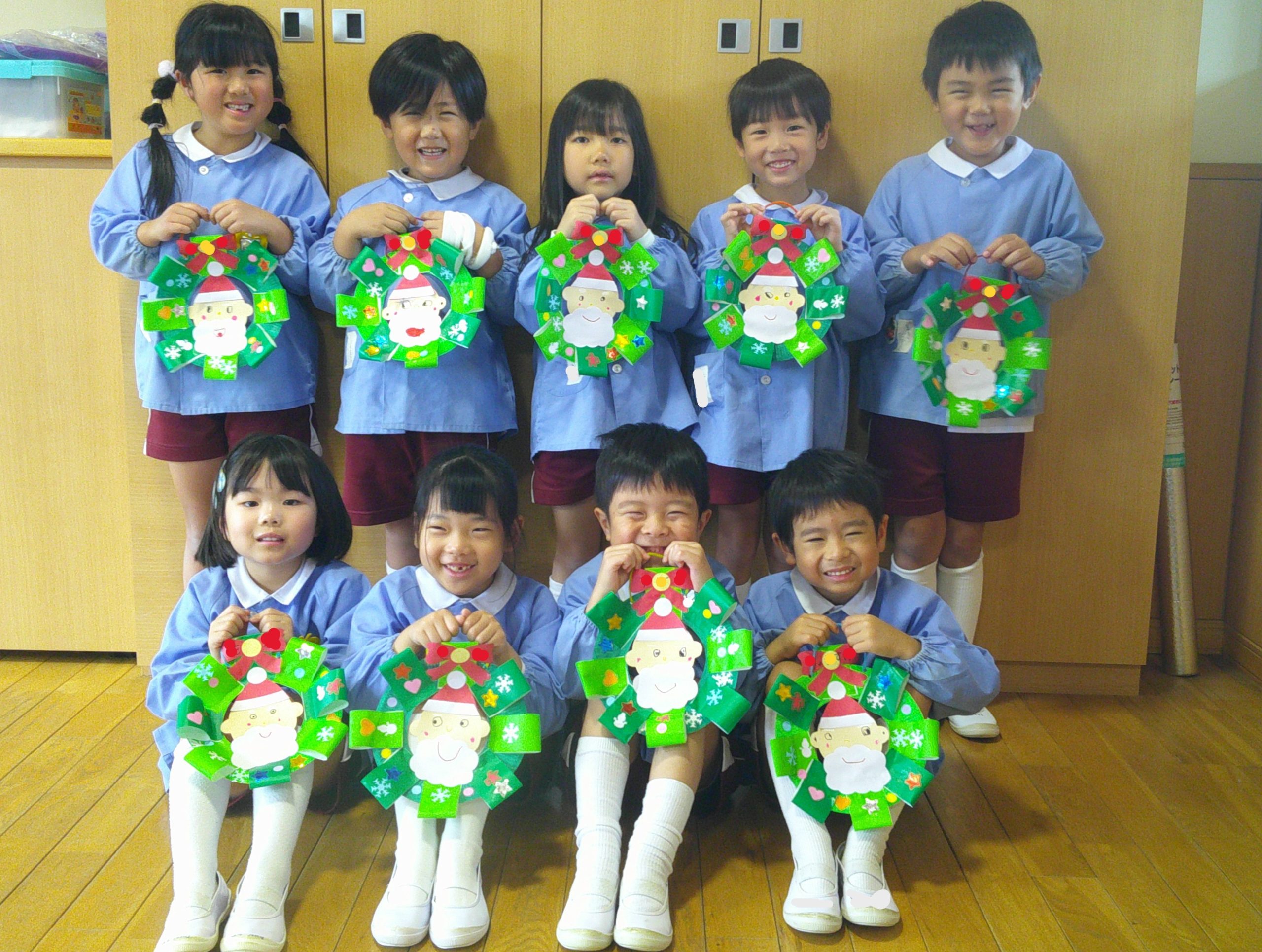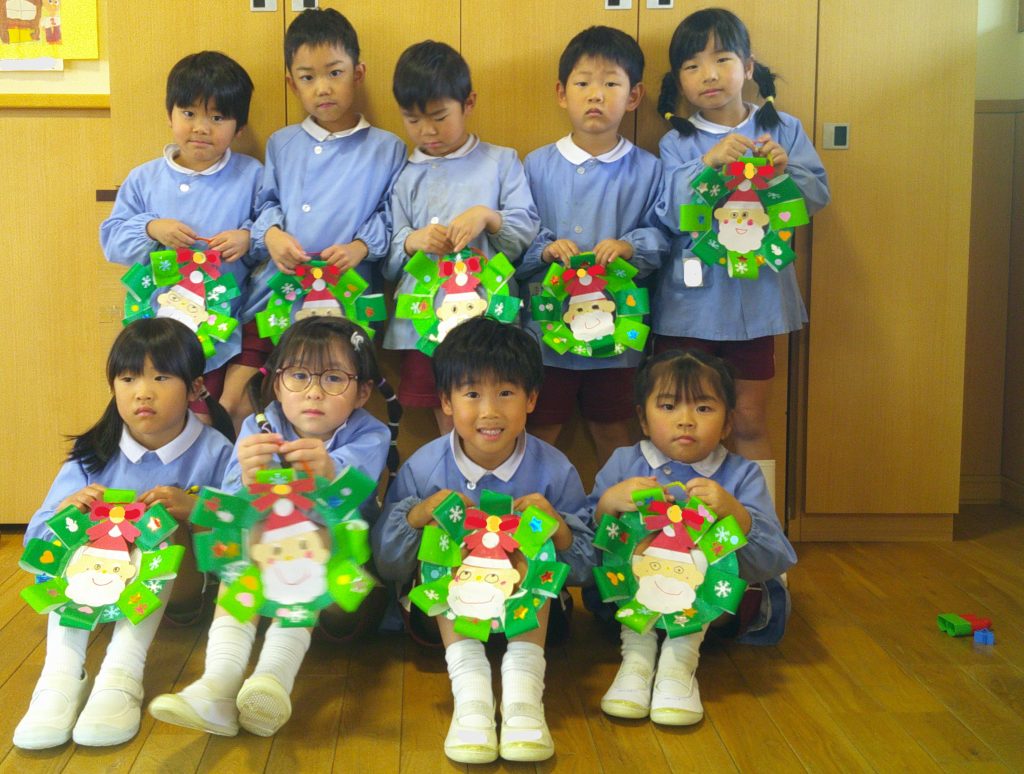 外の気温も急に冷え、子どもたちも「寒いなあ~」と話しています。「12月には何があるかな?」と子どもたちに尋ねると「クリスマス!」と嬉しそうに答えてくれた子どもたち。クリスマスに向けてリースを作ることにしました!