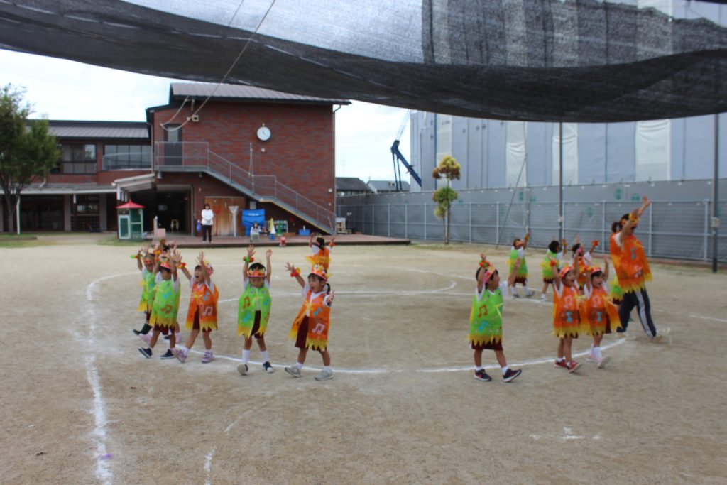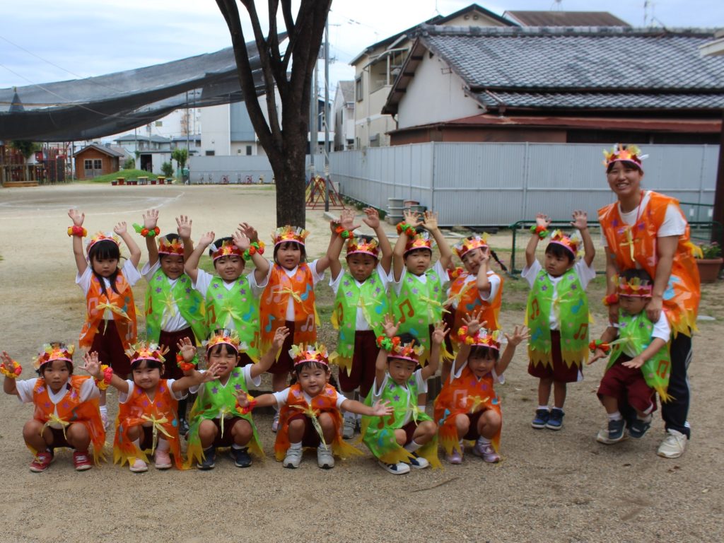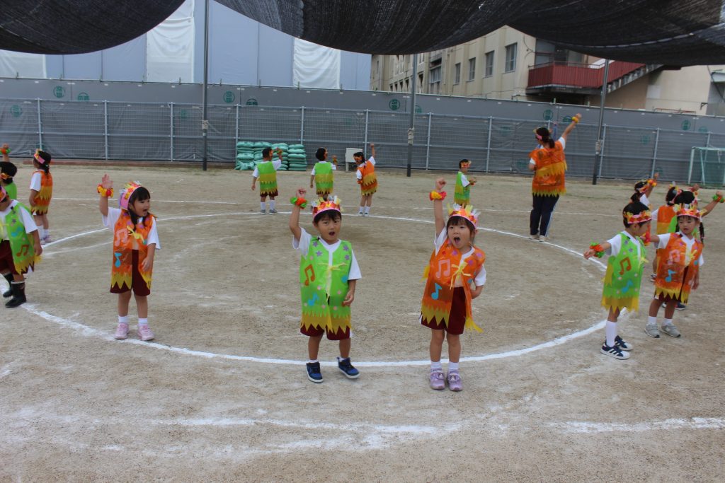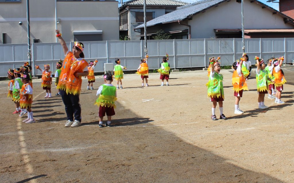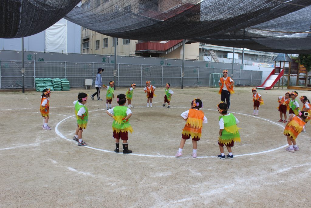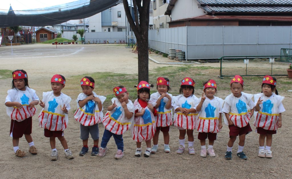 今日は、園庭で衣装を着ての練習!着る前から「服たのしみやな~」「いつ着れるん?」などワクワクしていました♪