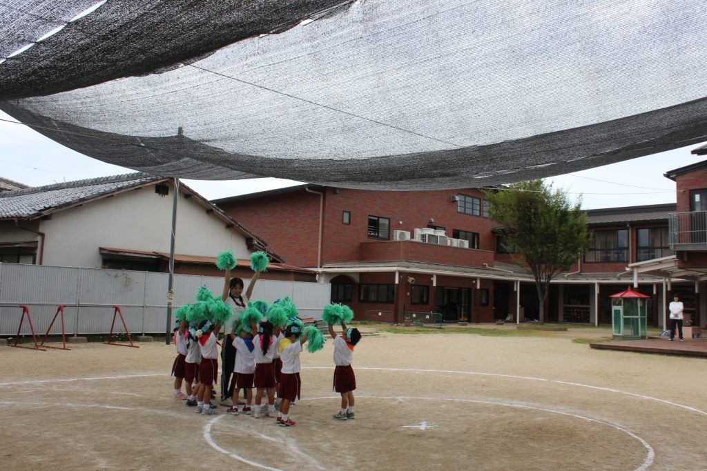 ダンスは、ゆずの「スマイル」に合わせて、ポンポンを持って元気いっぱい踊ります!