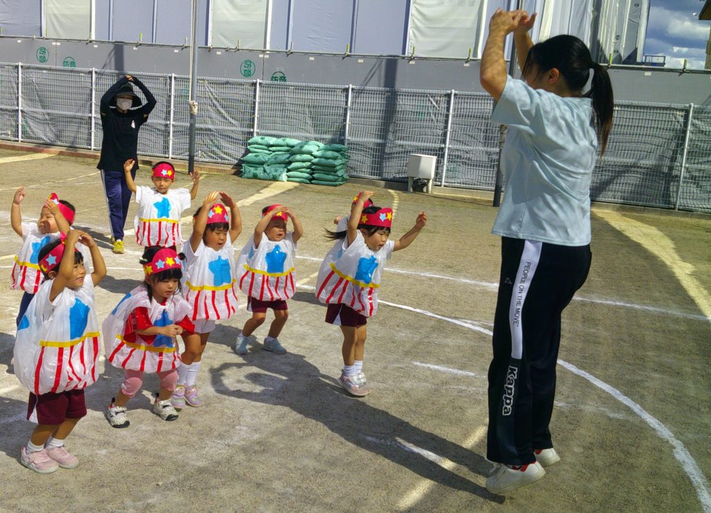 まだまだ暑い日が続きますが、毎日運動会のおけいこに励んでいる年中組のお友達!