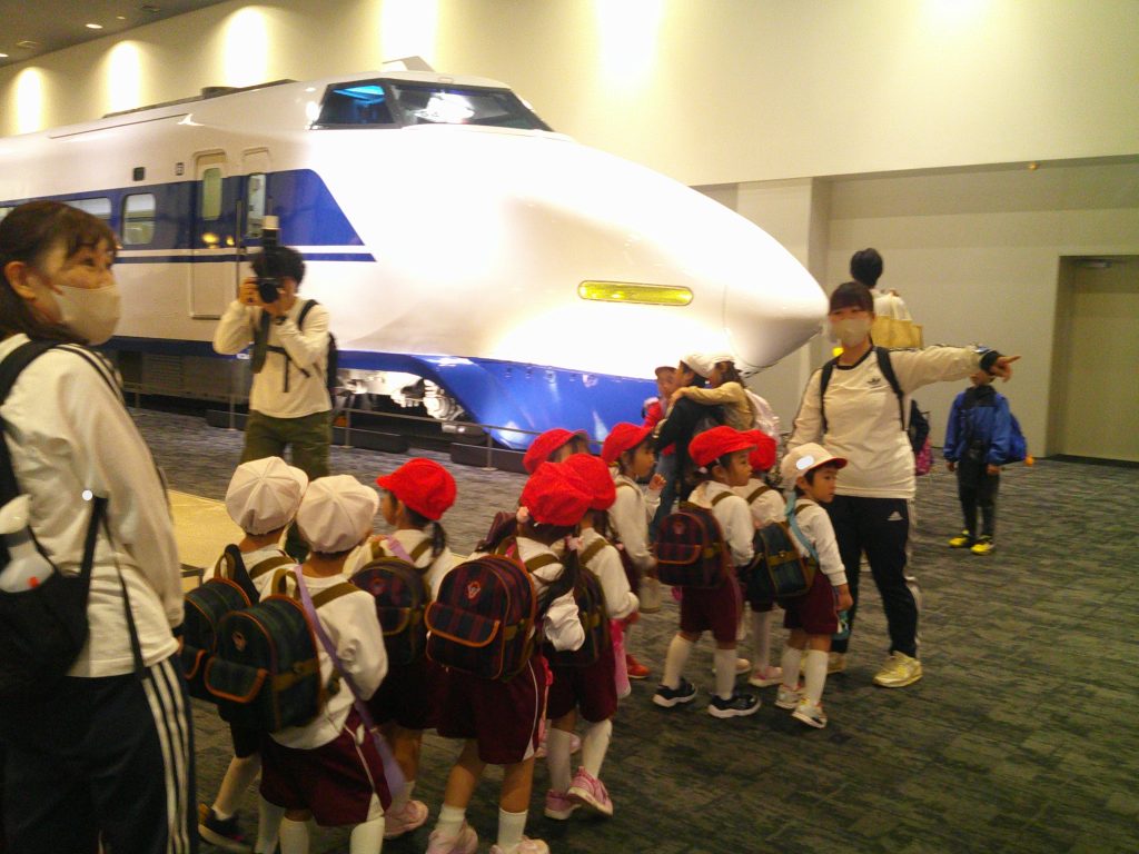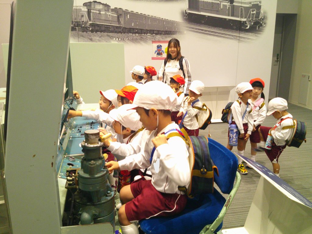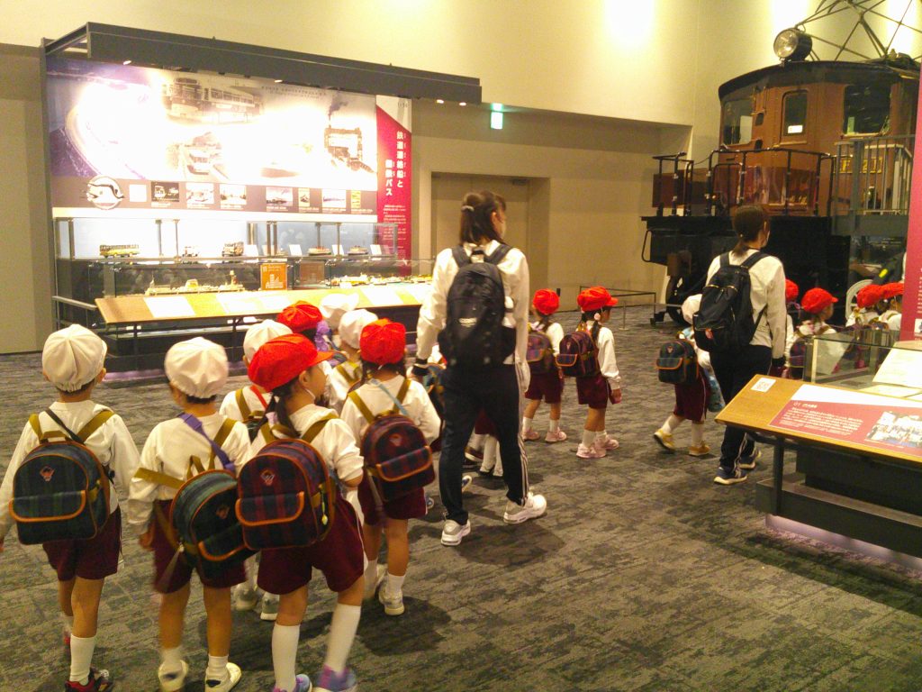 「すごい!」「おおきい!」「かっこいい!」と歓声をあげていました。クラス写真を撮って、それぞれのクラスに分かれて、館内を巡りました。