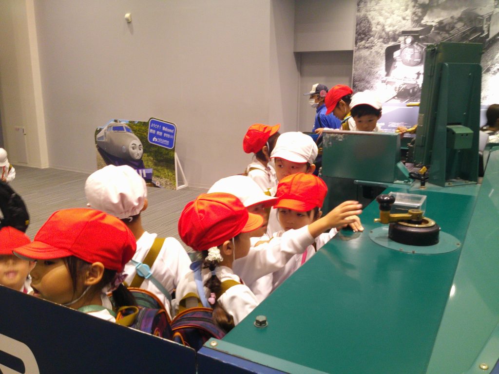 なかなか見ることのできない電車の信号機や、蒸気機関車、大きなトーマスに子どもたちは大興奮!目を輝かせながら見学していました。
