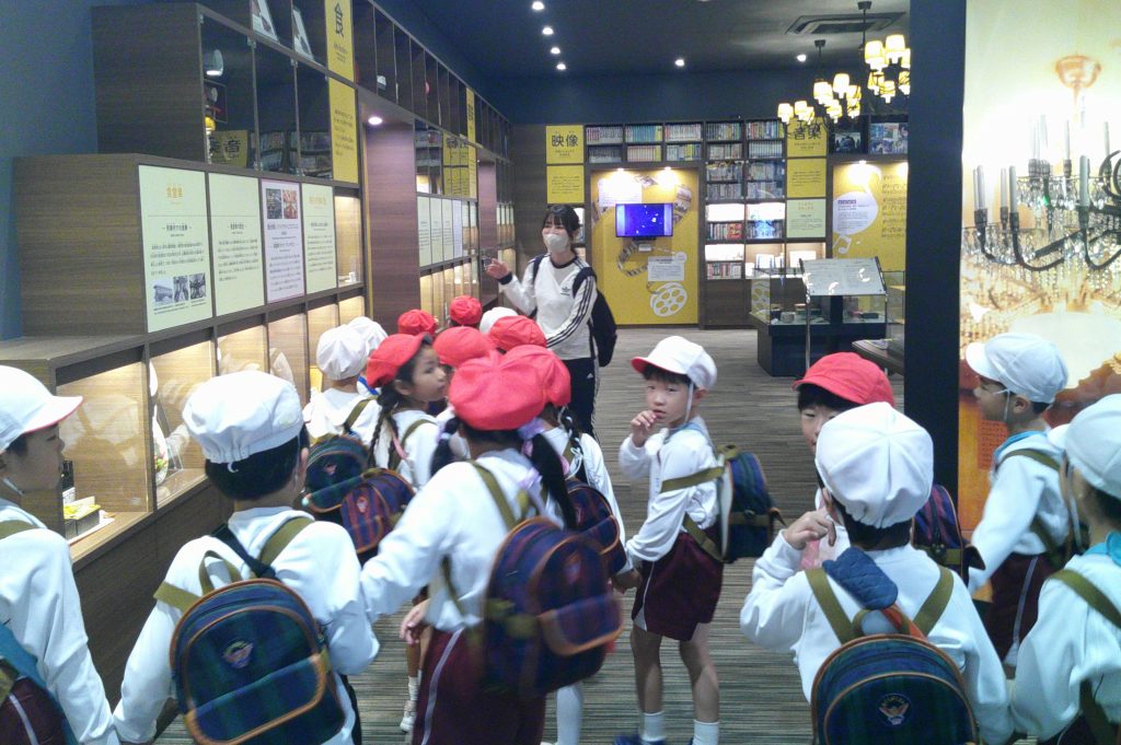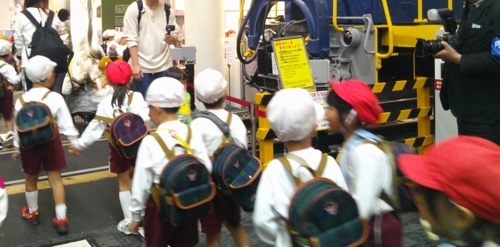 「すごい!」「おおきい!」「かっこいい!」と歓声をあげていました。クラス写真を撮って、それぞれのクラスに分かれて、館内を巡りました。