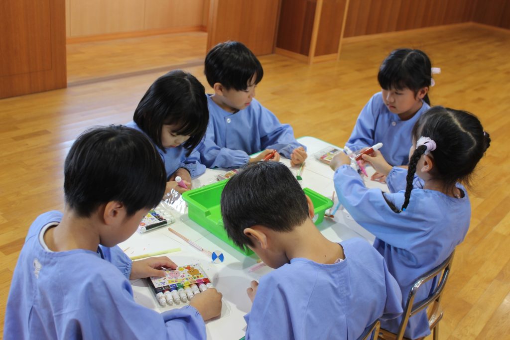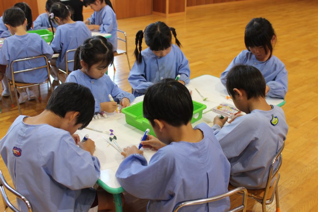 サインペンの好きな色を使って、模様を描いたり塗ったりしました。