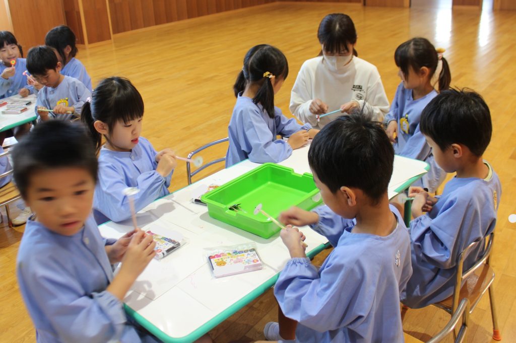 自分で作った風車を回して見みると「きれいー!」と嬉しそうにしていました。