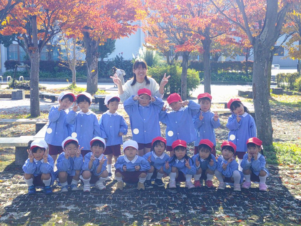 風が吹くと、木から落ち葉がひらひらと落ちてきて、落ちてきた葉っぱをみて「わー!降ってきた✨」「雨みたい!」などとお友達と楽しくお話している様子も見られました😄