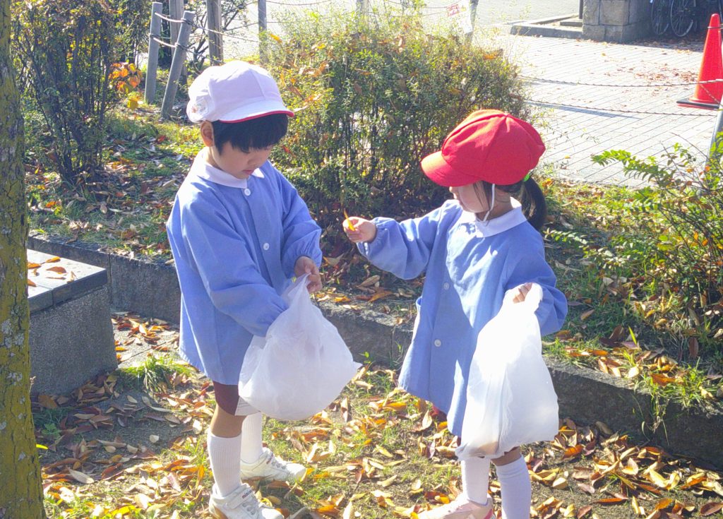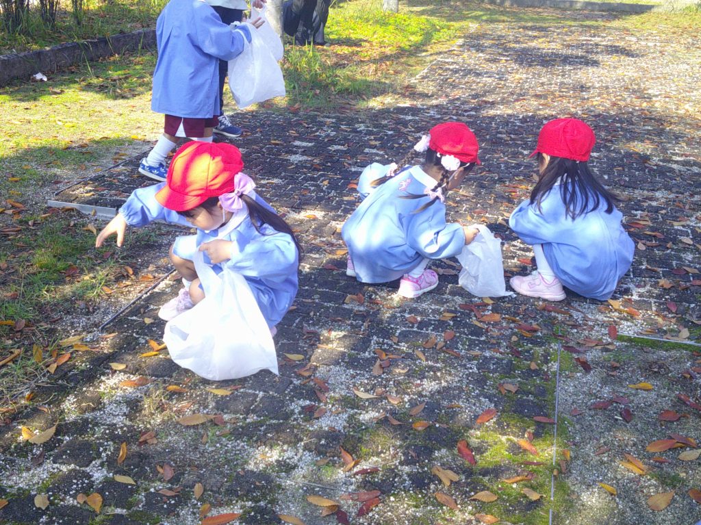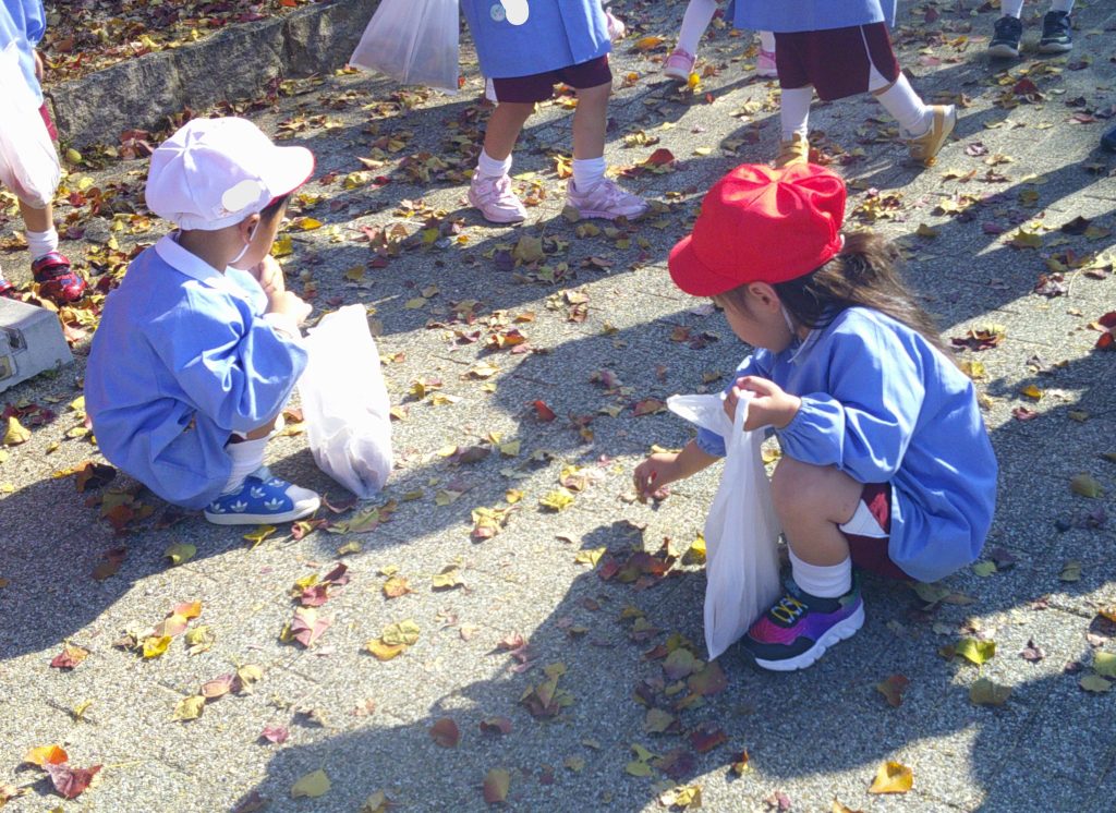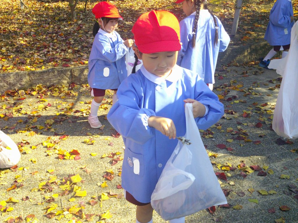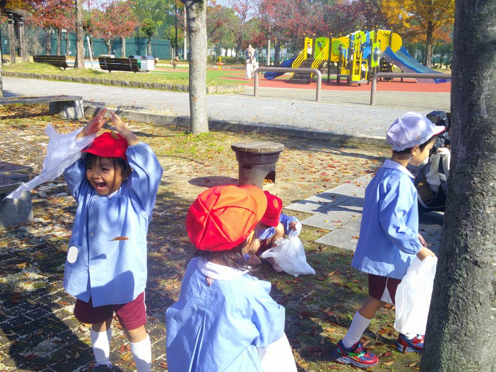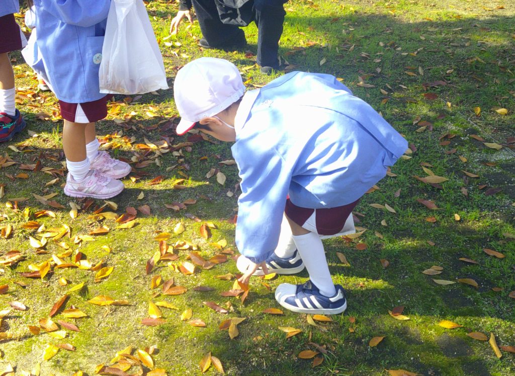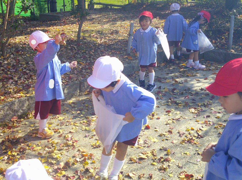 子どもたちも落ち葉拾いをとても楽しみにしていました。「今日、落ち葉拾い??」「バスに乗るん?」などと園バスに乗ることを楽しみにしているお友達もいました!