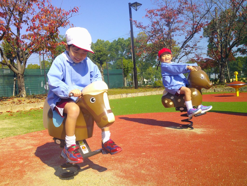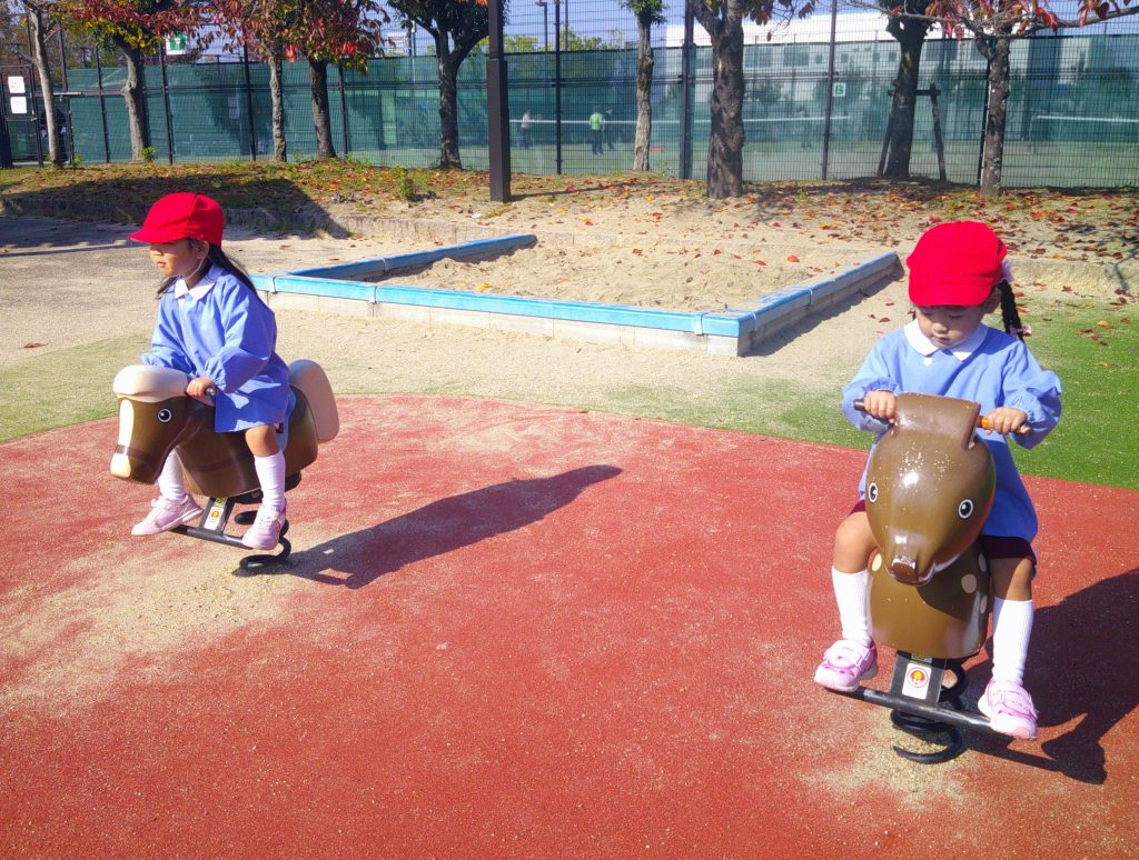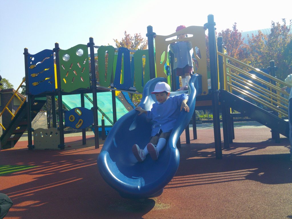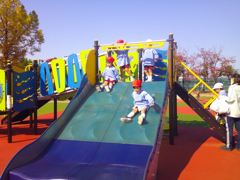 落ち葉拾いの後は、西宇治公園の遊具で遊びました!