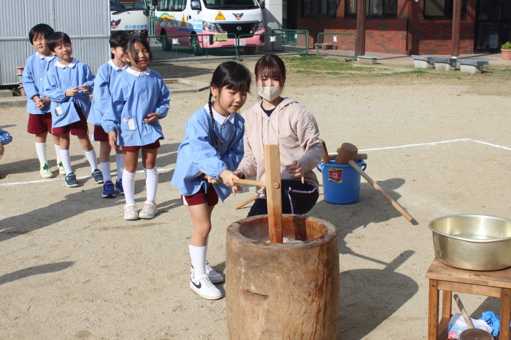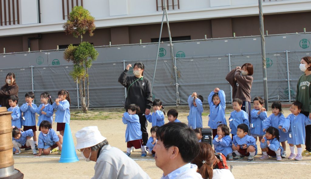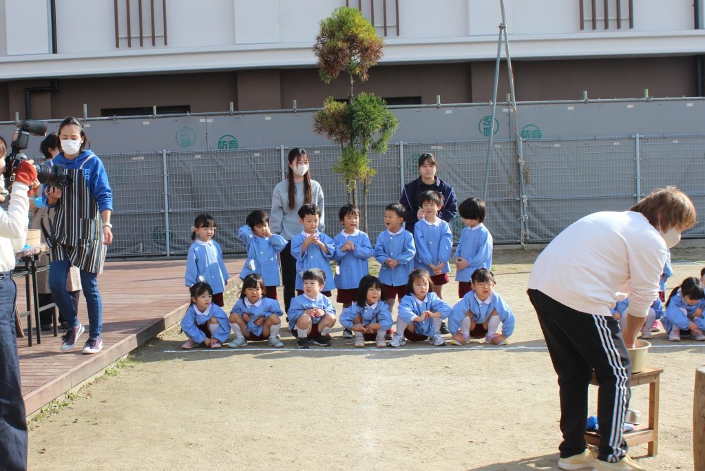 素敵な色が塗れたら早速回すことに挑戦!紐を巻く、紐を勢いよく引っ張る、と遊び方をみんなで確認してから行いました。初めは、なかなかコツを掴めず「難しい~」「全然回らへん😭」と話すお友達もいましたが、少しずつ回せるようになり「見て見て!回ったー!!」とニコニコの笑顔で見せてくれていました。冬休み前に持ち帰るので、それまではお部屋にこま名人さんがたくさん増えそうです😊💕