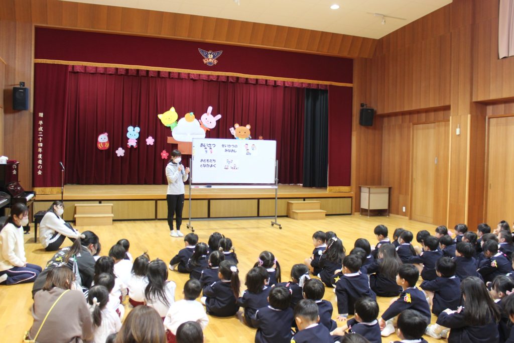 園長先生からのお話を聞き、3学期の約束事を教えていただきました。