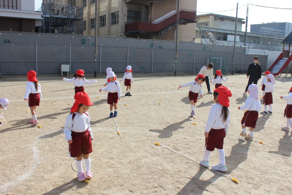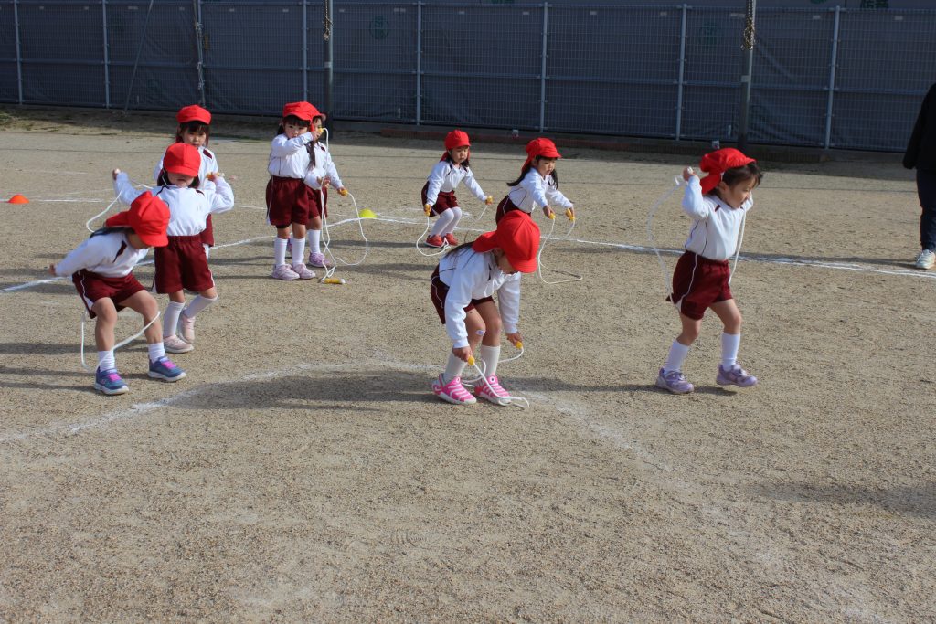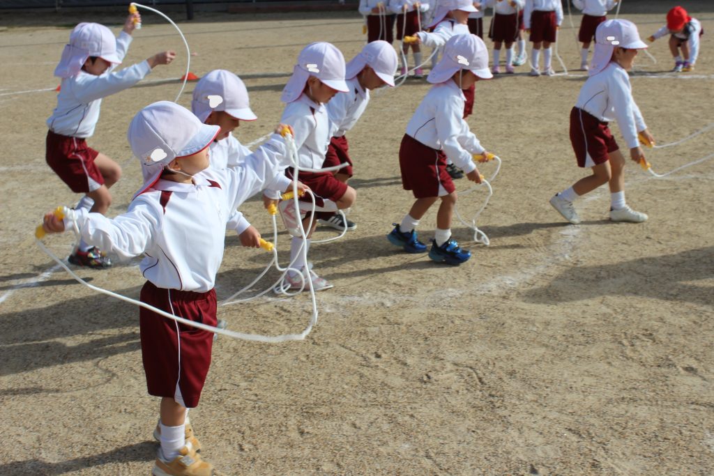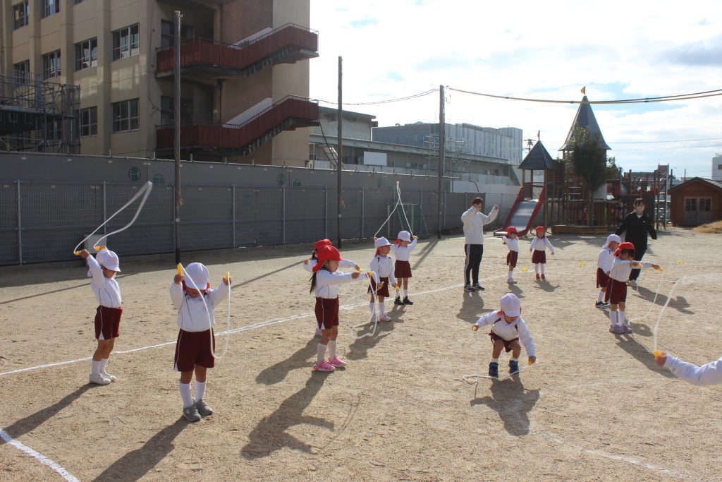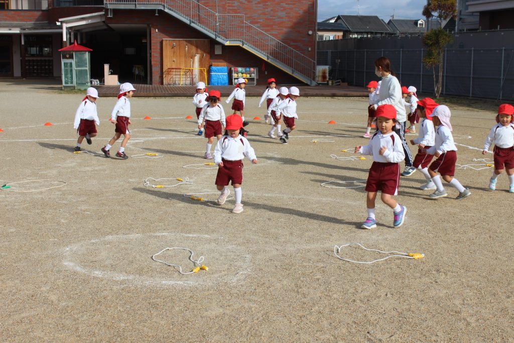 本日の体育あそびは、なわとびを使ってたくさん体を動かしました。
