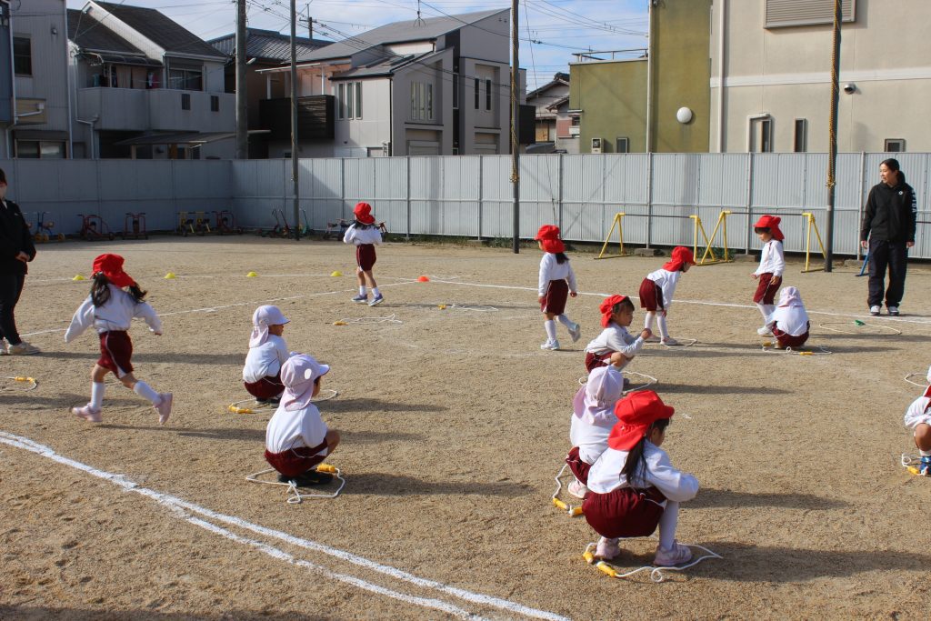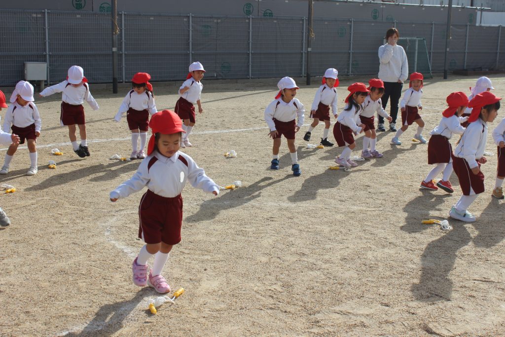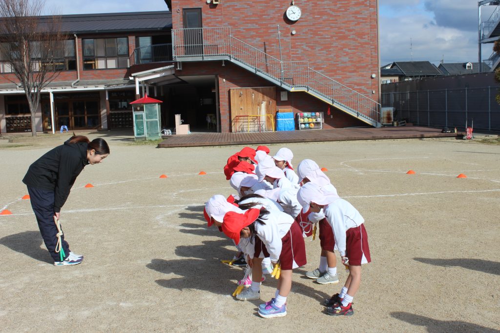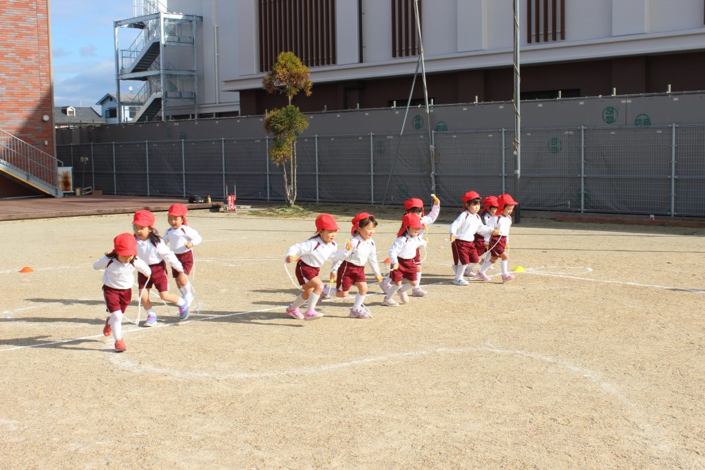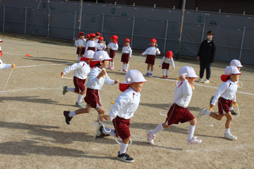 本日の体育あそびは、なわとびを使ってたくさん体を動かしました。
