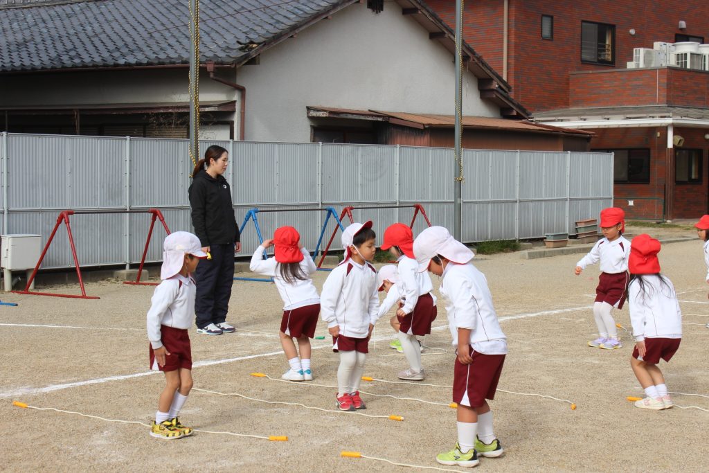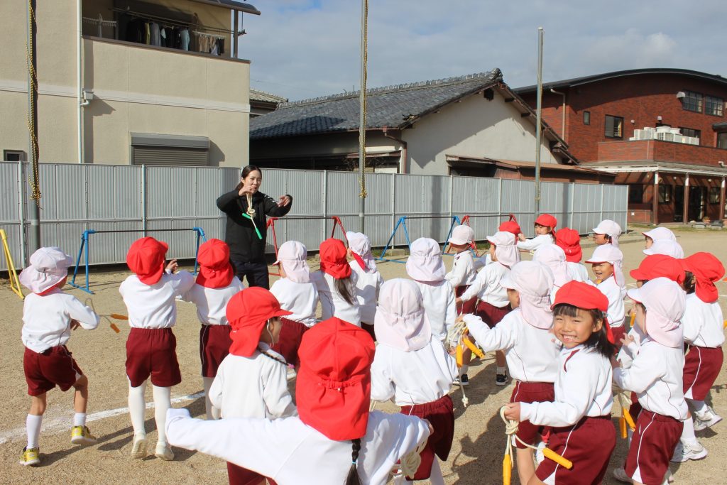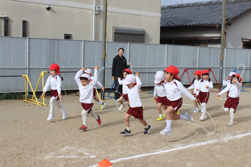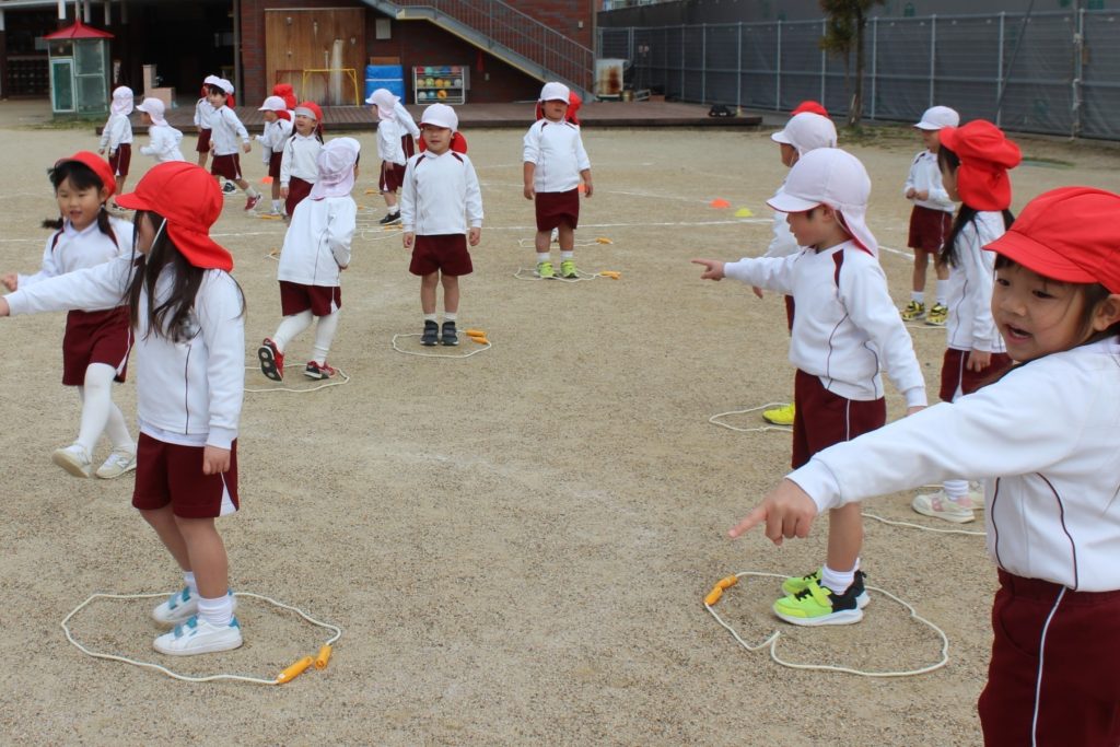本日の体育あそびは、なわとびを使ってたくさん体を動かしました。