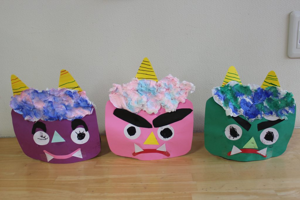 2月3日の節分に向けて、みんなで鬼のお面を作りました。