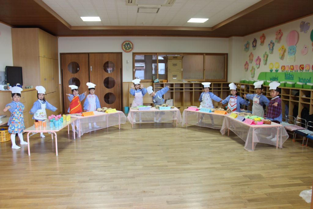 今日は、お部屋でパン屋さんごっこをしました!たんぽぽ組のお部屋をパン屋さんに変身✨