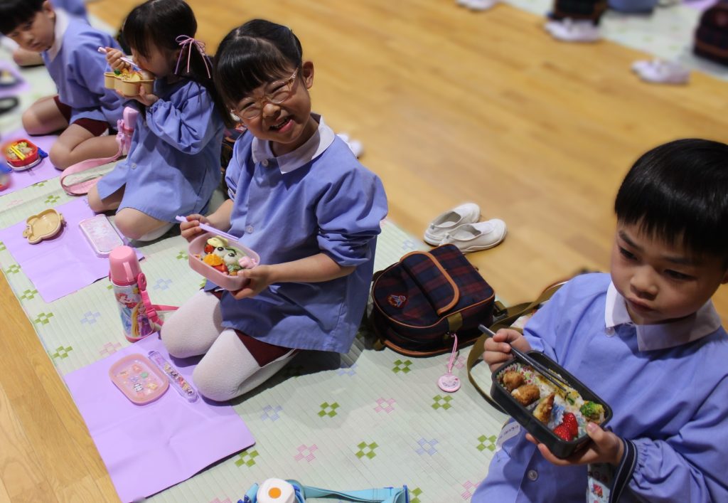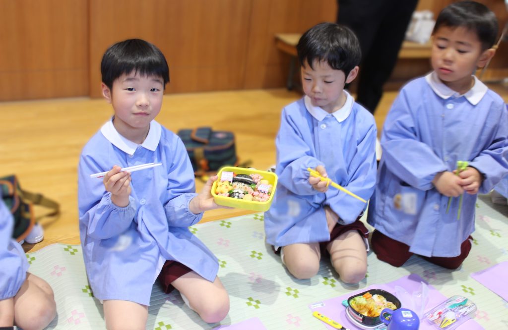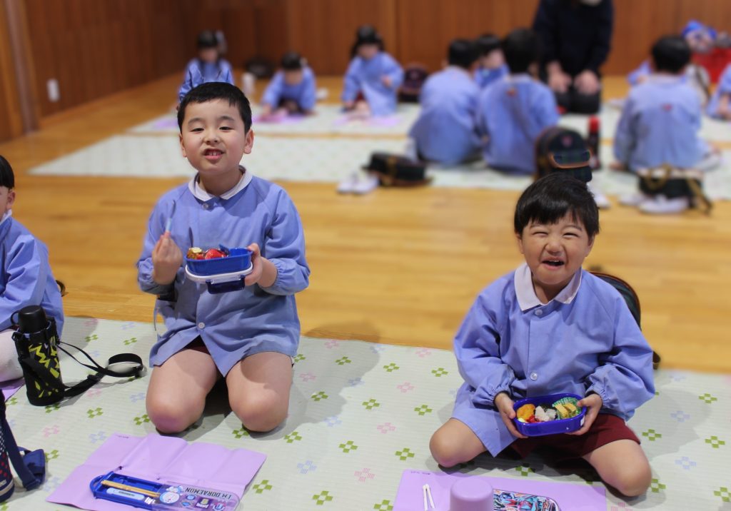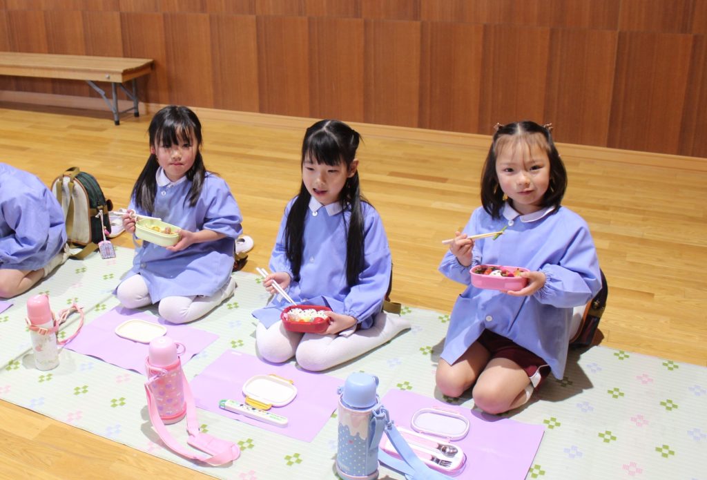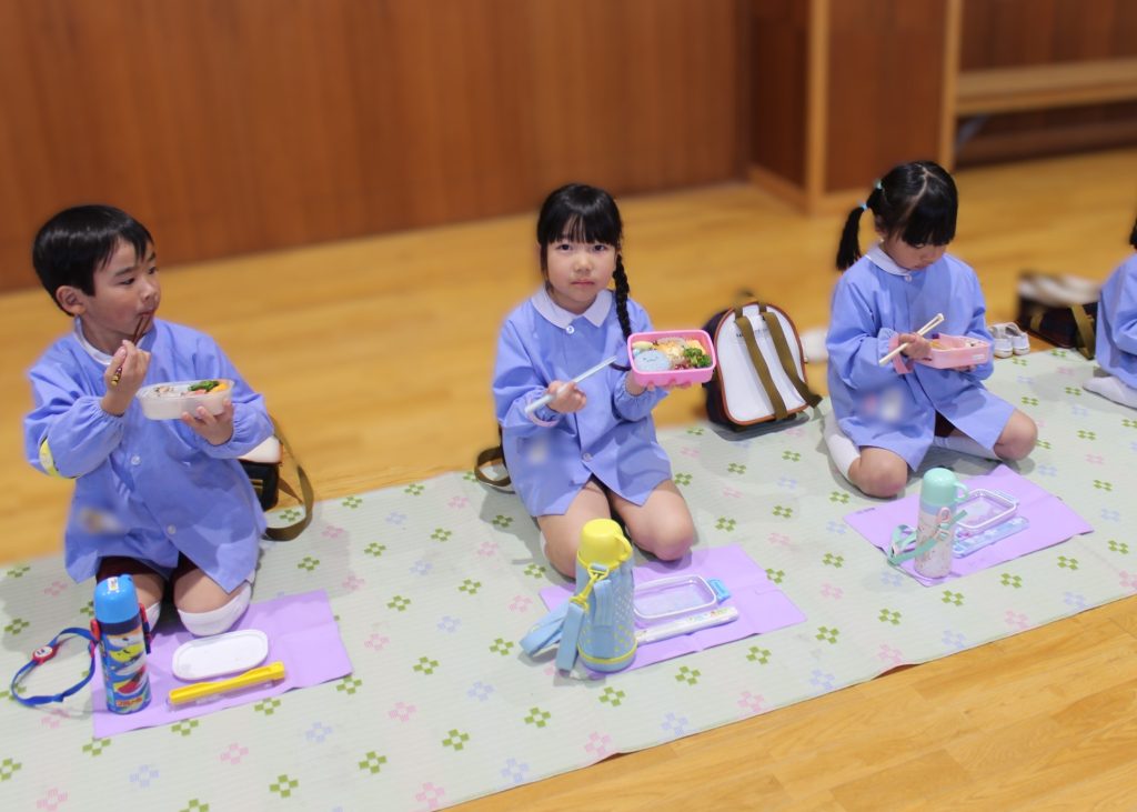 年長組さんは幼稚園で食べる最後のお弁当でした!お家の方にたくさんありがとうの気持ちを感じながら食べていましたよ✨