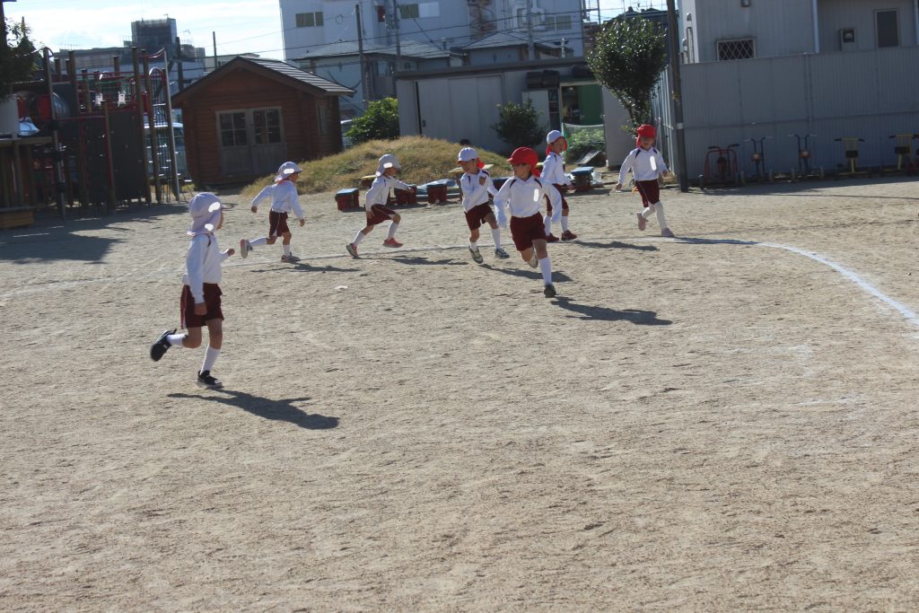 季節は秋から冬へと変わり始め、朝晩は寒さを感じるようになりました。いちご組・ひよこ組の子どもたちは、冷たい風が吹いていても元気にお外で遊んでいます。