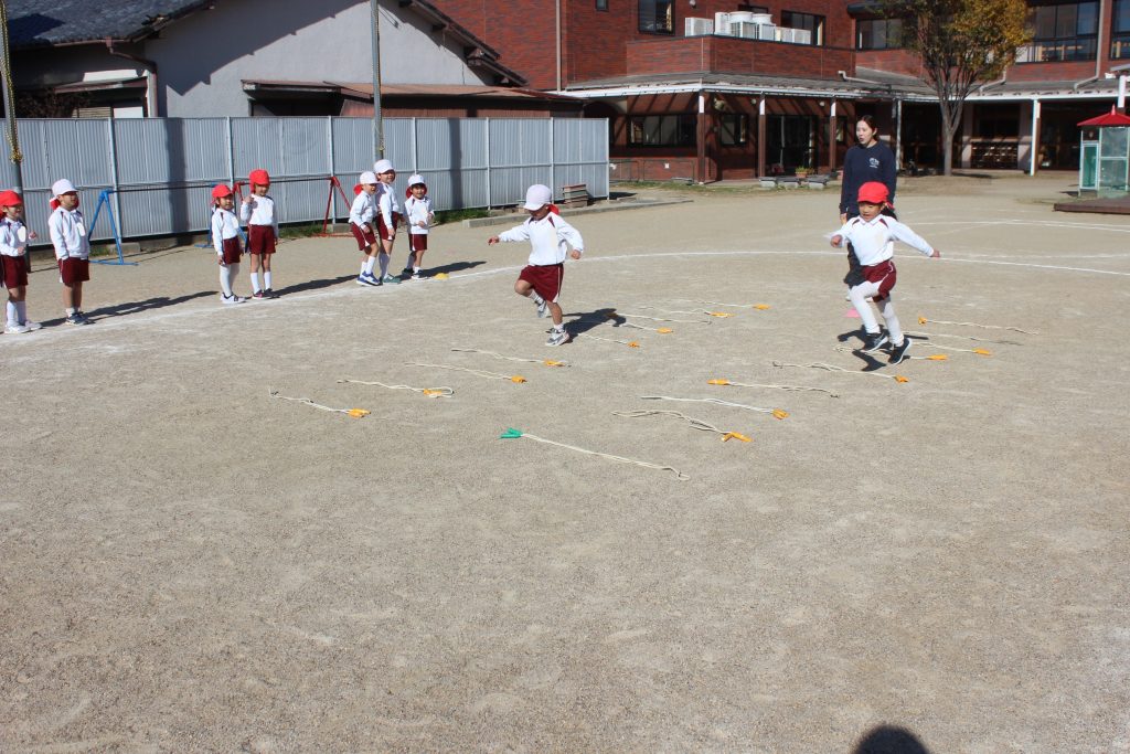 縄を並べて踏まないように走ったり、ジャンプをしたりしました。