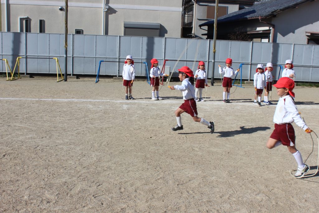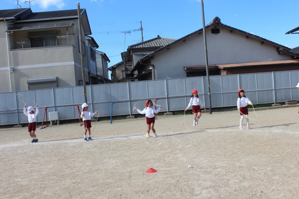 朝の遊びの時に、縄跳びに取り組んでいる子も少しずつ増えてきています。
